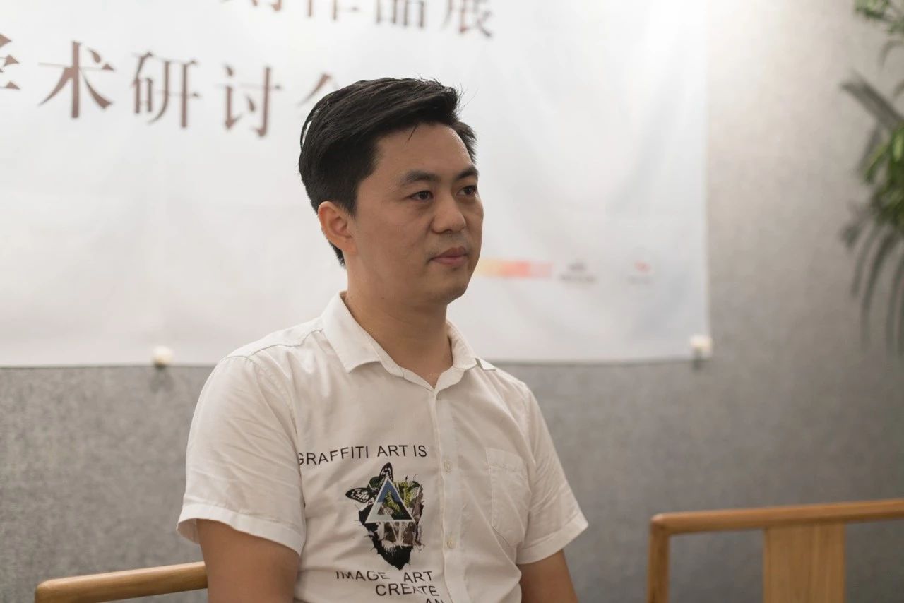 岳阳市美术馆流动展厅项目负责人王峰主持研讨会,并谈到“像与象的区别以及艺术系统的构建”