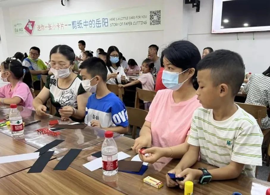 很高兴能够带孩子去体验岳阳美术馆开展的公教活动送你一张小卡片——剪纸中的岳阳。