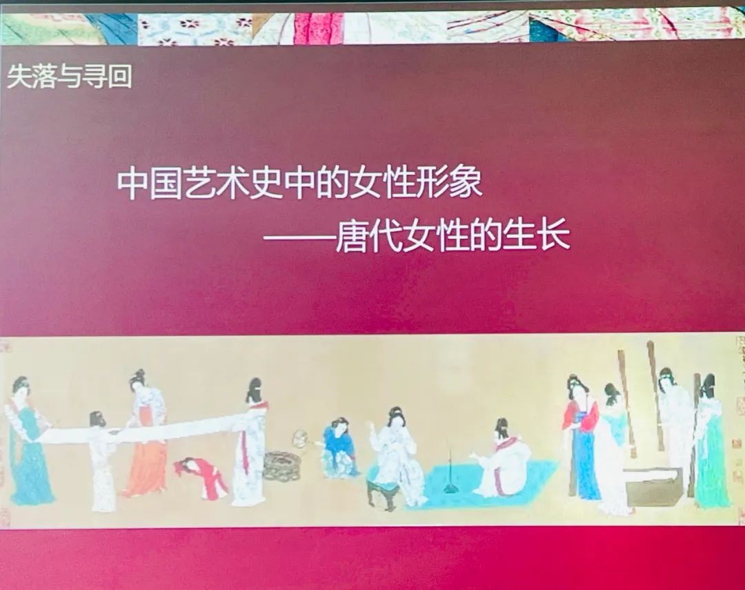 龚老师引导大家共同探讨了娇憨的唐代仕女俑、纤柔的唐代乐舞俑、万国来朝的章怀太子墓壁画、浓艳张扬的唐女妆容。悬念重重的《虢国夫人游春图》、令人遐想的《簪花仕女图》和《九娘自画像》更是引发了大家的热烈讨论。这次沙龙分享,让自觉、自知、自信的唐代女性形象重现在我们眼前,令人赞叹。