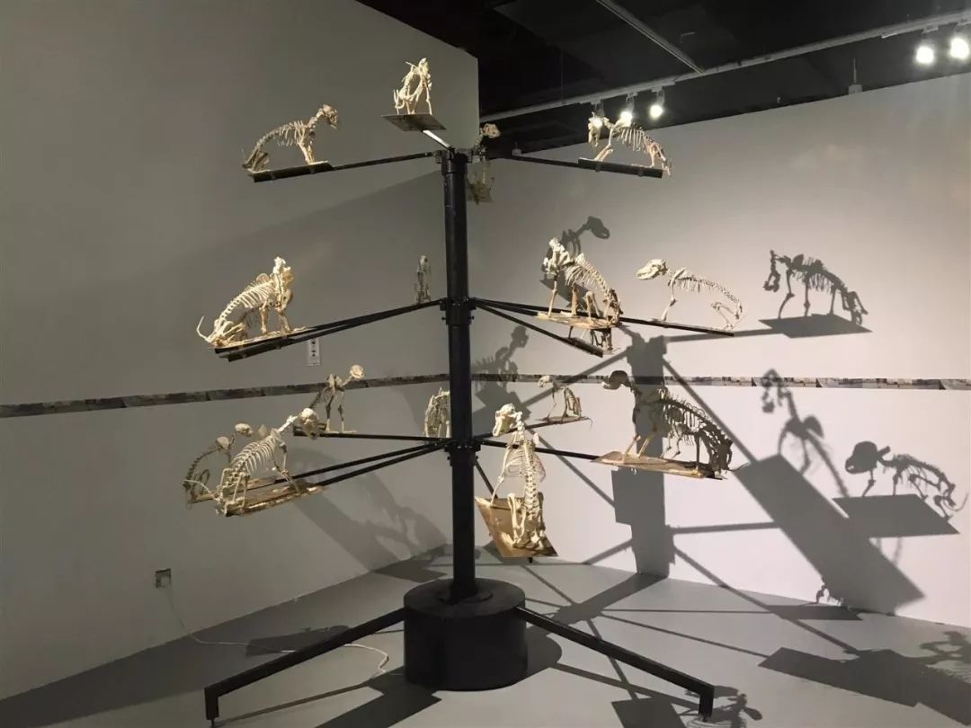 黄起才,生命之树,2016,动物骨骼,电机,金属支架,铜板,270 x 255 x 255 cm © 黄起才