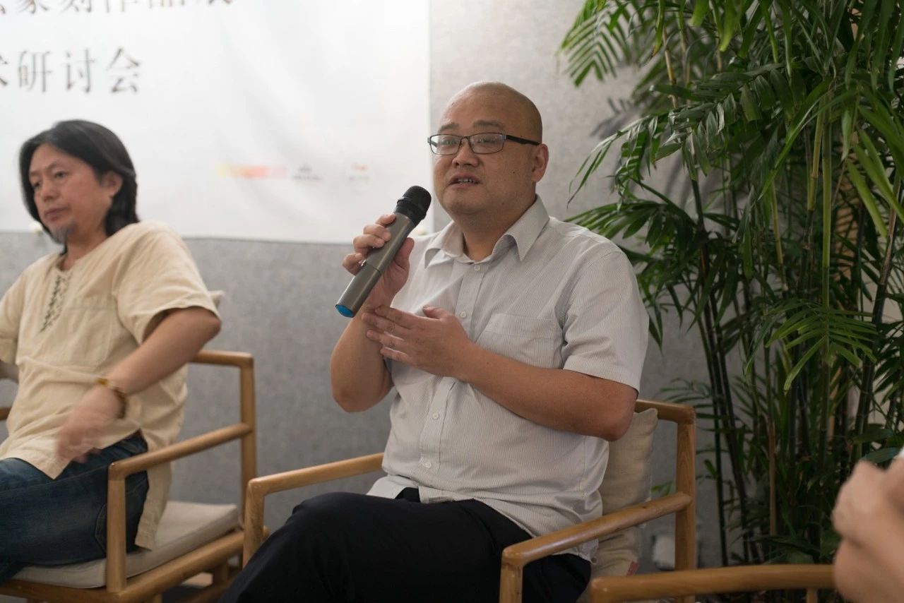 岳阳市美术馆流动展厅项目负责人王峰主持研讨会,并谈到“像与象的区别以及艺术系统的构建”