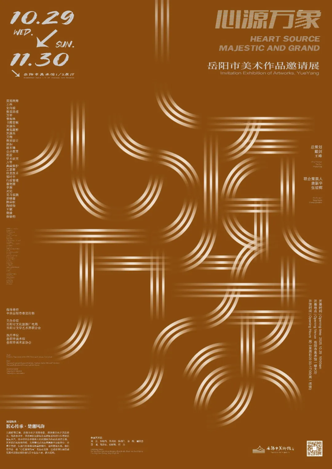 我们常看到这样的留言:“岳阳因为有这样的美术馆而更美好”。这份认可,来自冒雨登楼后仍赴馆看展的观众,来自深耕巴陵文脉的志愿导览员,来自倾情捐赠的艺术家与鼎力支持的工作单位及合作机构,更来自每一个热爱湖湘艺术的你。